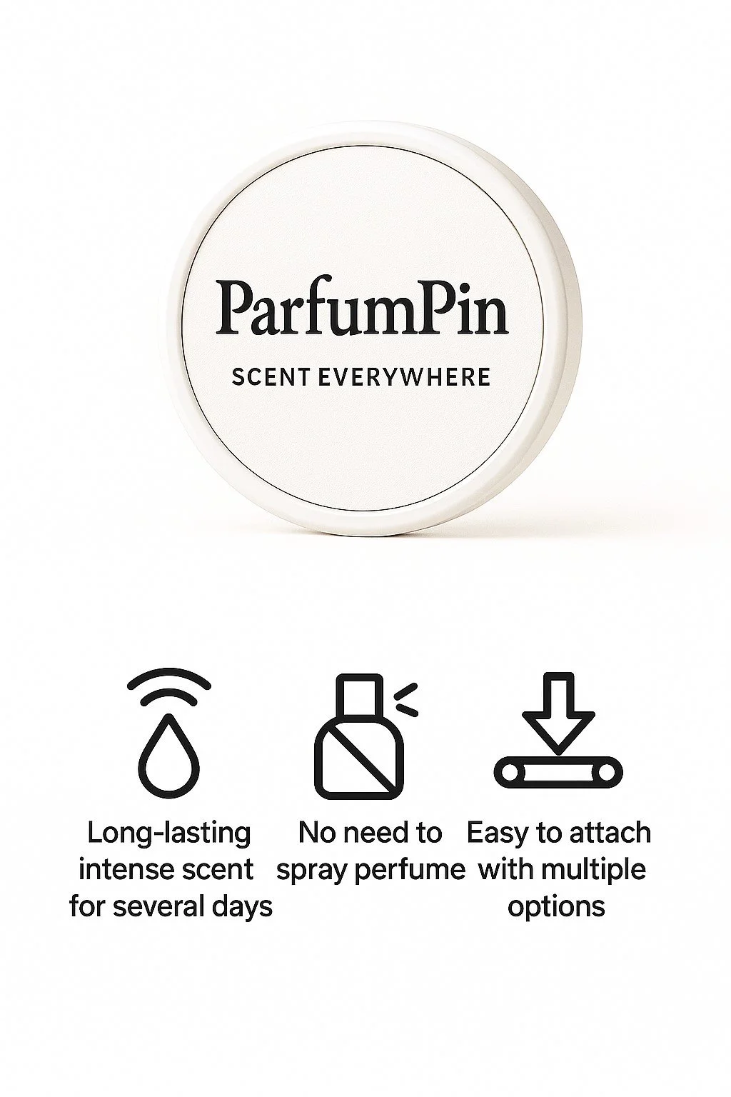 PARFUMPIN IS A MINIMALIS FRAGRANCE ACCESSORY THAT ATTACHES TO CLOTHING, BAGS, OR INTERIOR SURFACES. IT CARRIES YOUR FAVOURITE PERFUME AND RELEASES IT SUBTLY OVER TIME - SO YOU CAN ENJOY YOUR SIGNATUR SCENT EVERYWHERE. NO NEED TO SPRAY